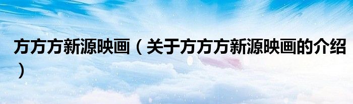 大家好,今天小乐来为大家解答以上的问题。方方方新源映画,关于方方方新源映画的介绍很多人还不知道,现在让我们一起来看看吧!
