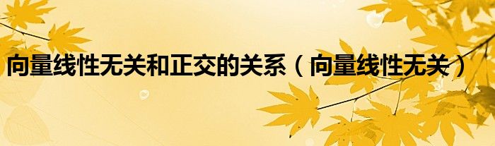 关于向量线性无关和正交的关系,向量线性无关这个很多人还不知道,今天菲菲来为大家解答以上的问题,现在让我们一起来看看吧!