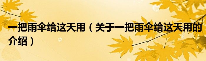 大家好,今天小乐来为大家解答以上的问题。一把雨伞给这天用,关于一把雨伞给这天用的介绍很多人还不知道,现在让我们一起来看看吧!