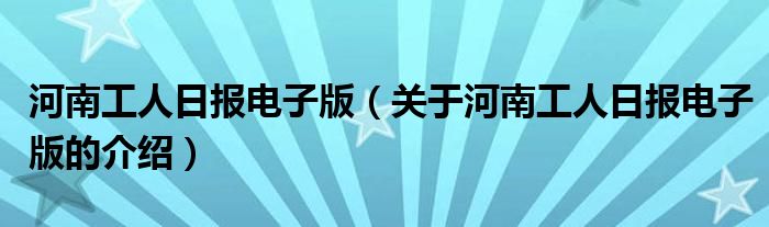 河南工人日报电子版(关于河南工人日报电子版的介绍)