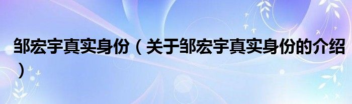 邹宏宇真实身份(关于邹宏宇真实身份的介绍)