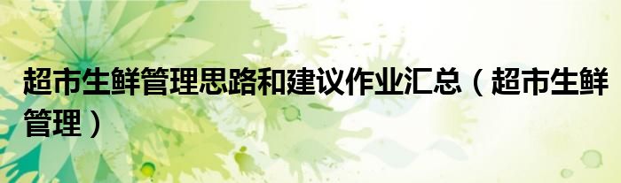关于超市生鲜管理思路和建议作业汇总,超市生鲜管理这个很多人还不知道,今天菲菲来为大家解答以上的问题,现在让我们一起来看看吧!