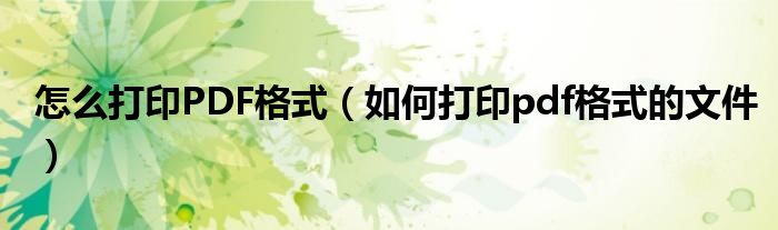 关于怎么打印PDF格式,如何打印pdf格式的文件这个很多人还不知道,今天菲菲来为大家解答以上的问题,现在让我们一起来看看吧!