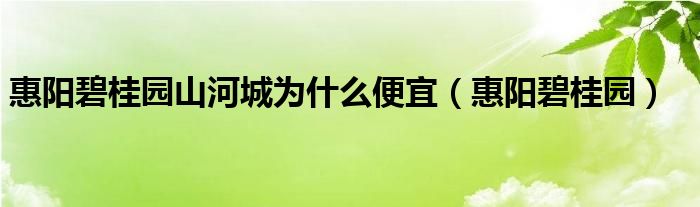 惠阳碧桂园山河城为什么便宜(惠阳碧桂园)