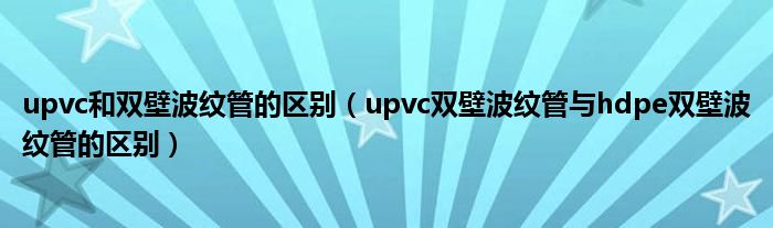关于upvc和双壁波纹管的区别,upvc双壁波纹管与hdpe双壁波纹管的区别这个很多人还不知道,今天菲菲来为大家解答以上的问题,现在让我们一起来看看吧!