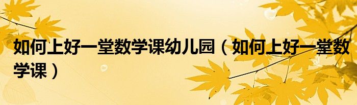 关于如何上好一堂数学课幼儿园,如何上好一堂数学课这个很多人还不知道,今天菲菲来为大家解答以上的问题,现在让我们一起来看看吧!