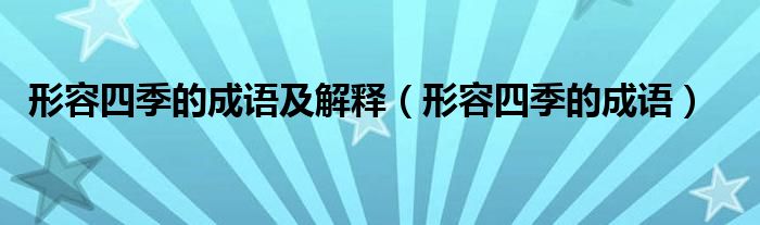 关于形容四季的成语及解释,形容四季的成语这个很多人还不知道,今天菲菲来为大家解答以上的问题,现在让我们一起来看看吧!