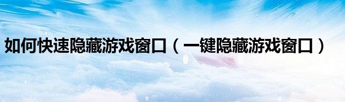 关于如何快速隐藏游戏窗口,一键隐藏游戏窗口这个很多人还不知道,今天菲菲来为大家解答以上的问题,现在让我们一起来看看吧!