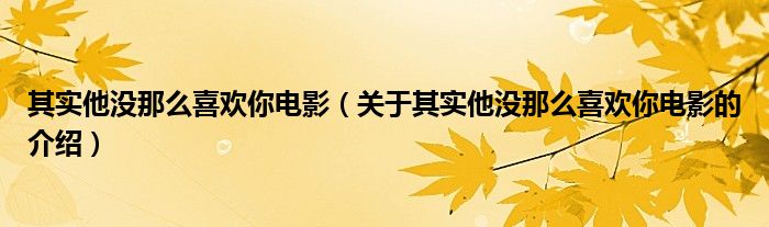 大家好,今天小乐来为大家解答以上的问题。其实他没那么喜欢你电影,关于其实他没那么喜欢你电影的介绍很多人还不知道,现在让我们一起来看看吧!