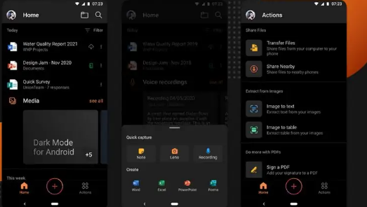 现在,这些应用程序以前曾在Play商店中作为单独的实体提供,但它们不是称为“ Microsoft Office”的单个应用程序的一部分。因此,所有这些服务现在都支持暗模式。