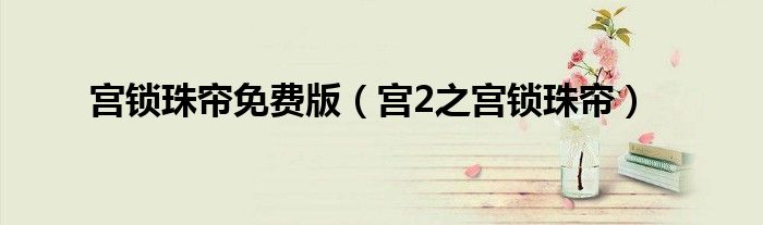 关于宫锁珠帘免费版,宫2之宫锁珠帘这个很多人还不知道,今天菲菲来为大家解答以上的问题,现在让我们一起来看看吧!