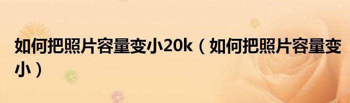 关于如何把照片容量变小20k,如何把照片容量变小这个很多人还不知道,今天菲菲来为大家解答以上的问题,现在让我们一起来看看吧!