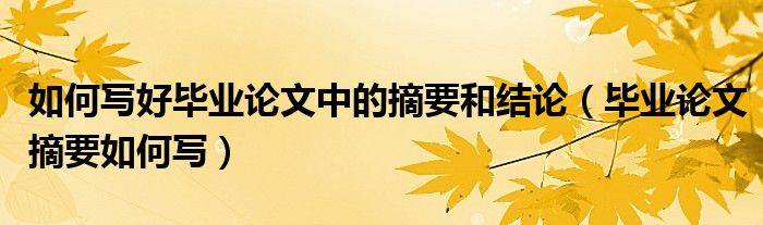 关于如何写好毕业论文中的摘要和结论,毕业论文摘要如何写这个很多人还不知道,今天菲菲来为大家解答以上的问题,现在让我们一起来看看吧!
