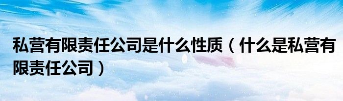 关于私营有限责任公司是什么性质,什么是私营有限责任公司这个很多人还不知道,今天菲菲来为大家解答以上的问题,现在让我们一起来看看吧!