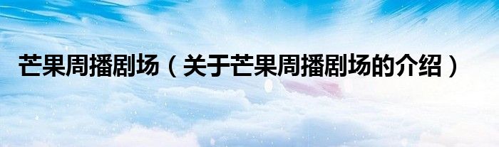大家好,今天小乐来为大家解答以上的问题。芒果周播剧场,关于芒果周播剧场的介绍很多人还不知道,现在让我们一起来看看吧!