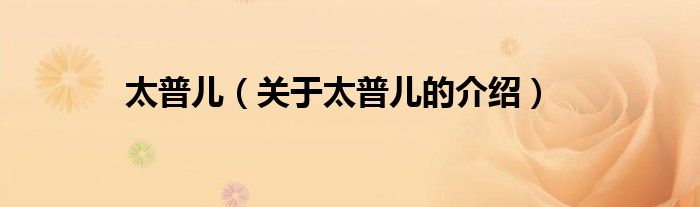 大家好,今天小乐来为大家解答以上的问题。太普儿,关于太普儿的介绍很多人还不知道,现在让我们一起来看看吧!
