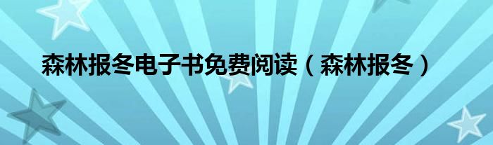 关于森林报冬电子书免费阅读,森林报冬这个很多人还不知道,今天菲菲来为大家解答以上的问题,现在让我们一起来看看吧!
