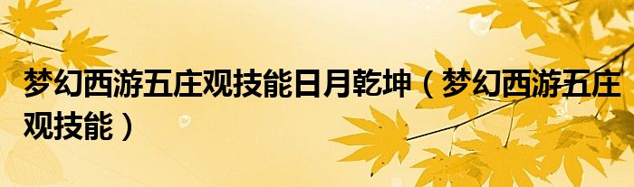 1、梦幻西游五庄观技能:一、日月乾坤:功效:令对手一定回合内无法行动,与怪物战斗中若对方均中此法术则战斗胜利,与玩家对战时类似普通封类法术。