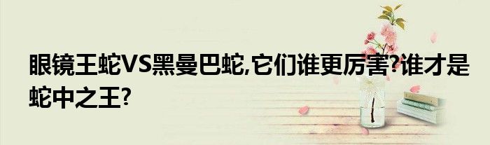 关于眼镜王蛇VS黑曼巴蛇,它们谁更厉害?谁才是蛇中之王?这个很多人还不知道,今天菲菲来为大家解答以上的问题,现在让我们一起来看看吧!