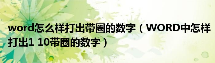 关于word怎么样打出带圈的数字,WORD中怎样打出1 10带圈的数字这个很多人还不知道,今天菲菲来为大家解答以上的问题,现在让我们一起来看看吧!