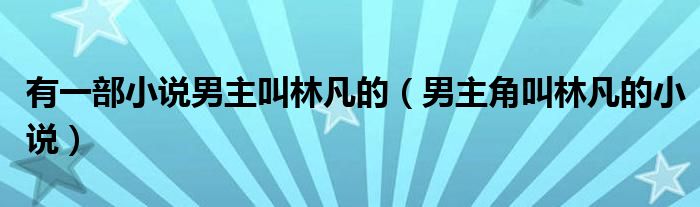 关于有一部小说男主叫林凡的,男主角叫林凡的小说这个很多人还不知道,今天菲菲来为大家解答以上的问题,现在让我们一起来看看吧!