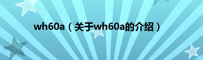 大家好,今天小乐来为大家解答以上的问题。wh60a,关于wh60a的介绍很多人还不知道,现在让我们一起来看看吧!