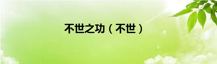 关于不世之功,不世这个很多人还不知道,今天菲菲来为大家解答以上的问题,现在让我们一起来看看吧!