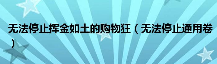 大家好,雨雨来为大家解答以上问题,无法停止挥金如土的购物狂,无法停止通用卷很多人还不知道,现在让我们一起来看看吧!