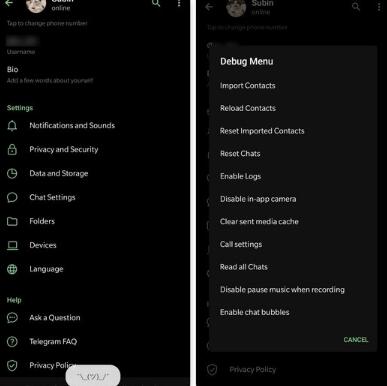 如果您喜欢冒险并且想要测试此功能。您必须触摸并按住Telegram图标,直到看到“耸肩”表情符号。一旦发生,您必须再次触摸并按住以访问开发人员菜单。