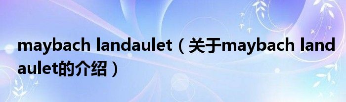 大家好,今天小乐来为大家解答以上的问题。maybach landaulet,关于maybach landaulet的介绍很多人还不知道,现在让我们一起来看看吧!
