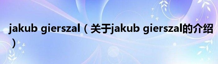 1、JakubGierszał(生于1988年3月20日)是波兰演员。