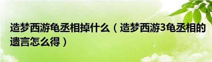 关于造梦西游龟丞相掉什么,造梦西游3龟丞相的遗言怎么得这个很多人还不知道,今天菲菲来为大家解答以上的问题,现在让我们一起来看看吧!