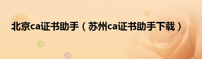 关于北京ca证书助手,苏州ca证书助手下载这个很多人还不知道,今天菲菲来为大家解答以上的问题,现在让我们一起来看看吧!