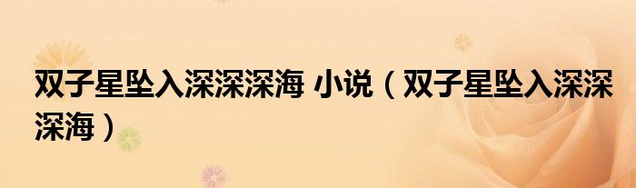 关于双子星坠入深深深海 小说,双子星坠入深深深海这个很多人还不知道,今天菲菲来为大家解答以上的问题,现在让我们一起来看看吧!