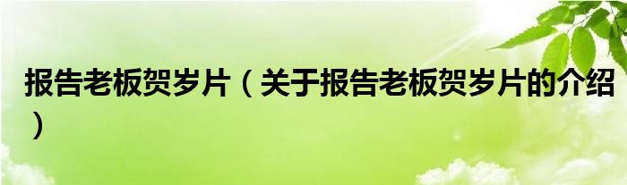 大家好,今天小乐来为大家解答以上的问题。报告老板贺岁片,关于报告老板贺岁片的介绍很多人还不知道,现在让我们一起来看看吧!