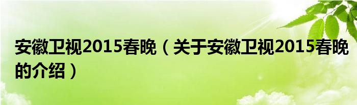 安徽卫视2015春晚(关于安徽卫视2015春晚的介绍)