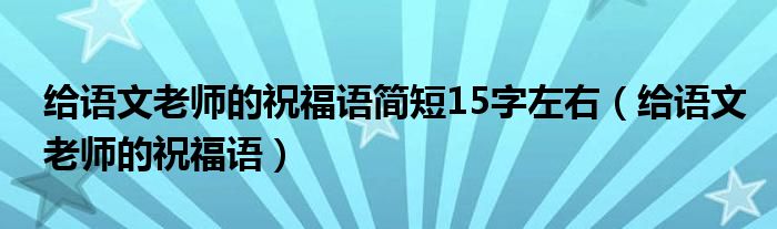关于给语文老师的祝福语简短15字左右,给语文老师的祝福语这个很多人还不知道,今天菲菲来为大家解答以上的问题,现在让我们一起来看看吧!