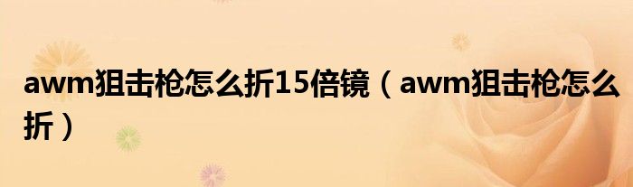 关于awm狙击枪怎么折15倍镜,awm狙击枪怎么折这个很多人还不知道,今天菲菲来为大家解答以上的问题,现在让我们一起来看看吧!