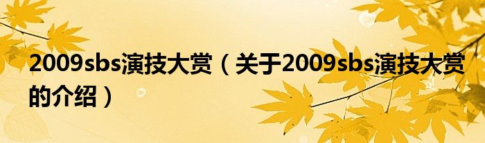 大家好,今天小乐来为大家解答以上的问题。2009sbs演技大赏,关于2009sbs演技大赏的介绍很多人还不知道,现在让我们一起来看看吧!