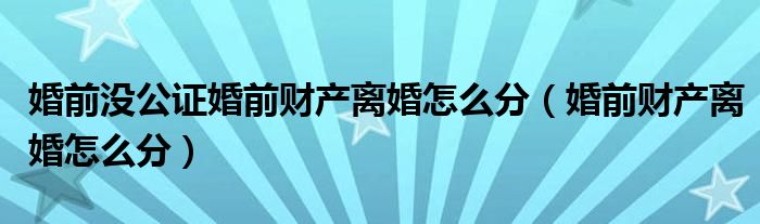 关于婚前没公证婚前财产离婚怎么分,婚前财产离婚怎么分这个很多人还不知道,今天菲菲来为大家解答以上的问题,现在让我们一起来看看吧!
