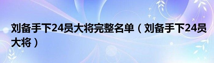 刘备手下24员大将完整名单(刘备手下24员大将)