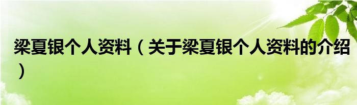 梁夏银个人资料(关于梁夏银个人资料的介绍)