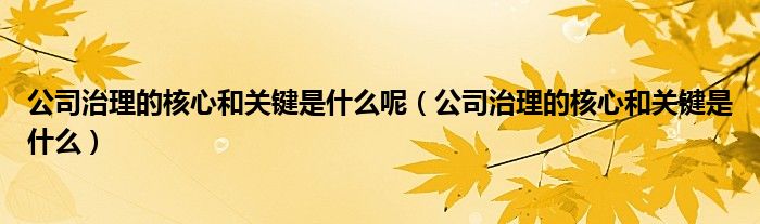 关于公司治理的核心和关键是什么呢,公司治理的核心和关键是什么这个很多人还不知道,今天菲菲来为大家解答以上的问题,现在让我们一起来看看吧!