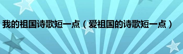 关于我的祖国诗歌短一点,爱祖国的诗歌短一点这个很多人还不知道,今天菲菲来为大家解答以上的问题,现在让我们一起来看看吧!