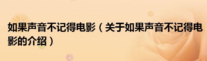 如果声音不记得电影(关于如果声音不记得电影的介绍)
