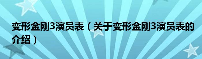大家好,小都来为大家解答以上的问题。变形金刚3演员表,关于变形金刚3演员表的介绍很多人还不知道,现在让我们一起来看看吧!