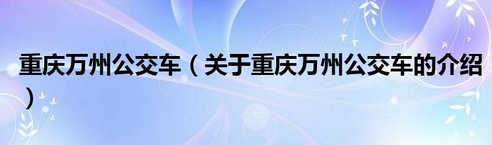 大家好,小都来为大家解答以上的问题。重庆万州公交车,关于重庆万州公交车的介绍很多人还不知道,现在让我们一起来看看吧!