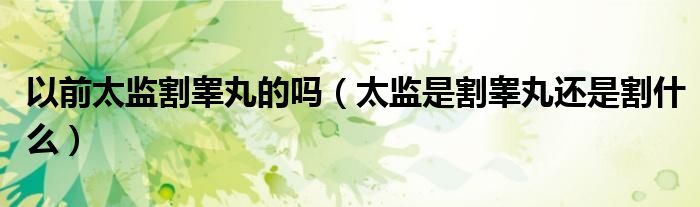 关于以前太监割睾丸的吗,太监是割睾丸还是割什么这个很多人还不知道,今天菲菲来为大家解答以上的问题,现在让我们一起来看看吧!
