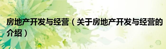 房地产开发与经营(关于房地产开发与经营的介绍)