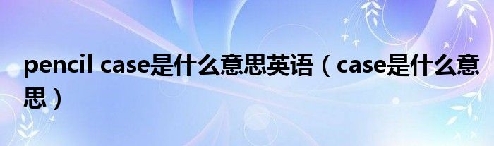 关于pencil case是什么意思英语,case是什么意思这个很多人还不知道,今天菲菲来为大家解答以上的问题,现在让我们一起来看看吧!